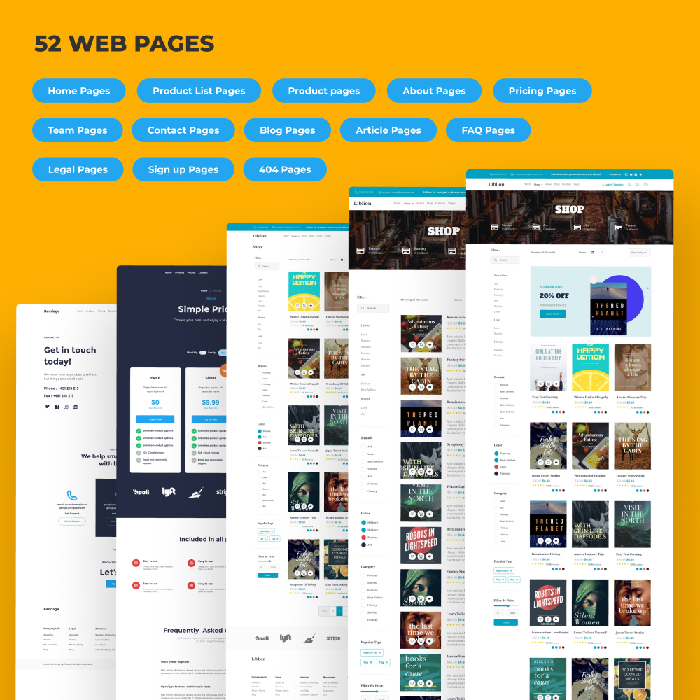 - 9 Product List Pages: Pre-built pages to showcase books in different categories and collections.
